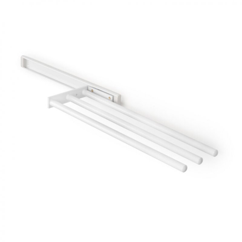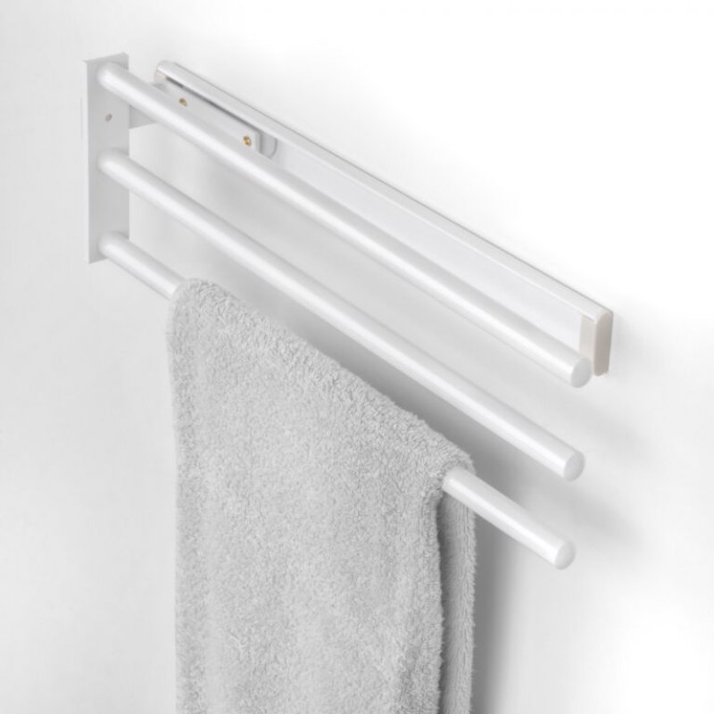Má tři ramena pro zavěšení ručníků nebo hadříků, která lze otočit o 90ş v závislosti na tom, zda je věšák upevněn na straně nábytku nebo pod pracovní plochou (montážní šrouby jsou součástí balení).