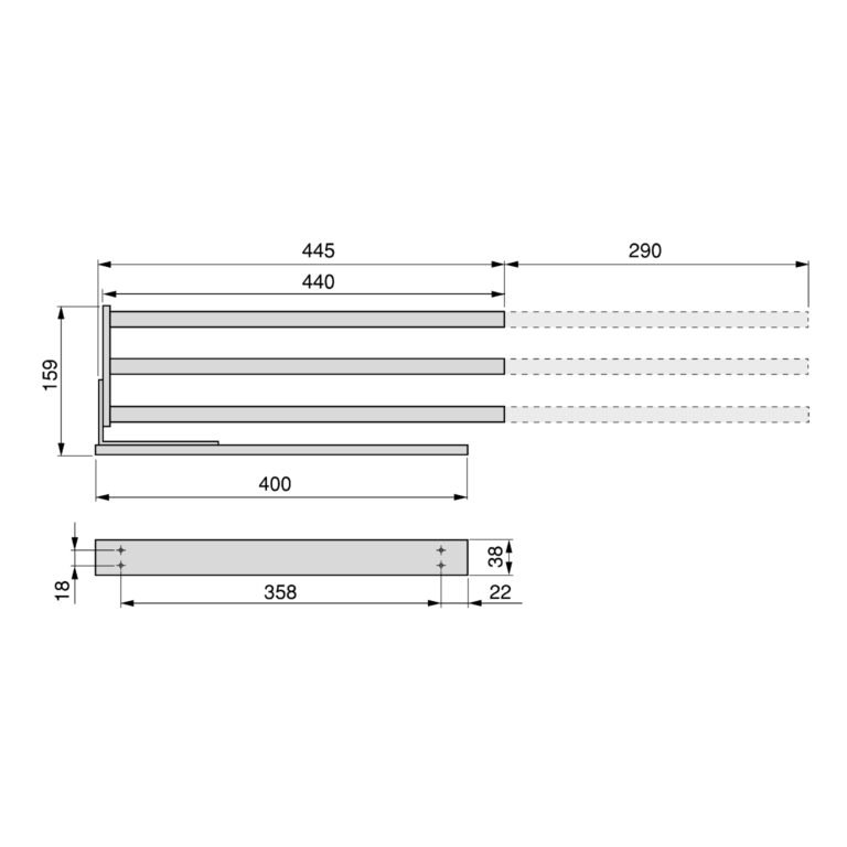 • Rozměr výrobku: 38x445x94 mm