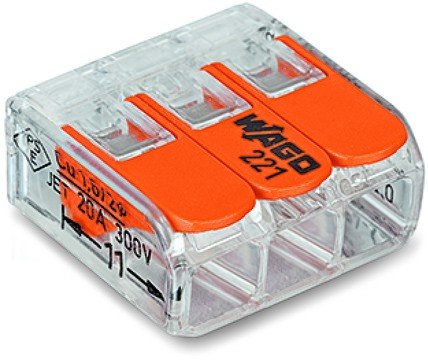 Mimořádně malé rozměry Svorky série 221 jsou o 40 % menší než předchozí modely série 222. Lze je rychle a bez problému instalovat i za stísněných podmínek a do instalačních krabiček. Ušetřený prostor nabízí možnost dalšího rozšíření. Průhledný kryt Nový design krytu řady 221 z průhledného plastu umožňuje snadnou kontrolu umístění vodiče. Ihned uvidíte, zda je vodič celý zasunut a správně zapojen. Lze zkontrolovat i délku odizolování. Snadné vedení vodiče k místu upnutí. Snadná obsluha K dispozici jsou dva otvory pro pohodlné a bezpečné měření běžnými zkušebními hroty. Svorky jsou založeny na technologii CAGE CLAMP®, která se obejde bez použití nářadí, upínací body jsou otevírány a zavírány pomocí ovládací páčky Ovládání páčky je oproti předchozímu modelu jednoduší. Široká škála použití Svorky série 221 jsou použitelné pro všechny běžné druhy vodičů. Pro průřezy vodičů od 0,14 do 4 mm2 (lankové) nebo 0,2 až 4 mm2 (jedno nebo vícežílové). Díky jmenovitému proudu od 32 A a jmenovitému napětí od 450 V je série 221 vhodná pro rozličné aplikace. Typické použití: připojení svítidel, motorů žaluzií, domovních telefonů, ovládání dveří a vrat. V průmyslu jsou vhodné pro připojení motorů a čerpadel. Množství 1 ks Číslo výrobce 221 - 412 Typ (výrobce) 221 - 412 Typ konektoru (kategorie) Kabelová svorka Barva Transparentní · oranžová Připojení (součástky) Pružinová svorka Rozměr, šířka 13.1 mm pólů 2 Jmenovitý proud 32 A Teplotní rozsah Až +105 °C Jmenovité napětí 450 V Minimální průřez pevný 0.2 mm2 Odizolovaná délka 11 mm Minimální průřez flexibilní 0.14 mm2 AWG 24 - 12 Pevný průřez max. 4 mm2 Rozměr, délka 18.6 mm Izolační materiál Plast Max. flexibilní průměr 4 mm2