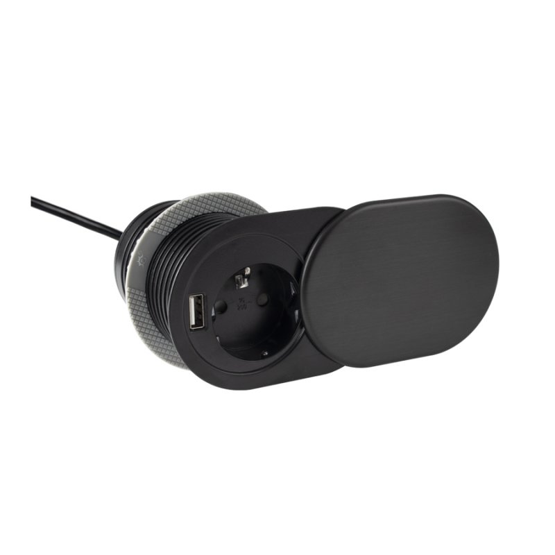 Zápustná zásuvka SLIDEBOX 230V, 1 USB ČERNÁ