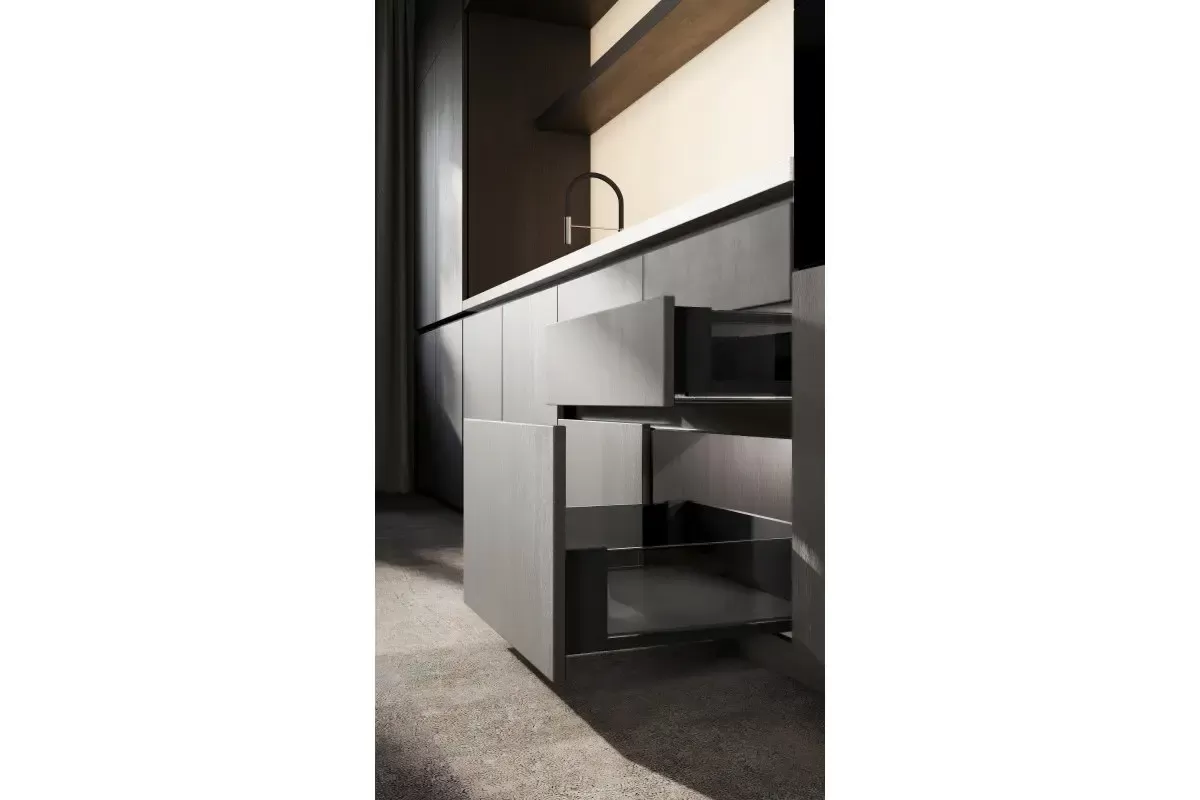 Zásuvka AXIS PRO se skleněnými bočnicemi má dlouhou životnost certifikovanou na 60 000 cyklů. Poskytuje plný výsuv v délkách od 300 do 550 mm a mechanismus měkkého zavírání zaručuje tichý chod a plynulé zavírání zásuvky. Díky 3 výškovým variantám se dokonale přizpůsobí vašim interiérům. Zásuvkové sklo AXIS PRO je tvrzené sklo , odolné proti poškození a snadno se čistí. S šířkou bočnice zásuvky pouhých 14 mm můžete maximálně využít vnitřní prostor skříňky. Hmotnost zásuvky umožňuje uložit do ní až 40 kg různých produktů. Zásuvky AXIS PRO se skleněnými bočnicemi jsou založeny na posuvných lištách AXIS PRO s měkkým dovíráním. Instalace je snadná díky pohodlnému nastavení zevnitř, nastavení sklonu a horizontálnímu nastavení v rozsahu +- 2 mm. Zásuvka je vhodná pro širokou škálu systémů řízení prostoru, příborových vložek, rohoží a třídičů odpadu.