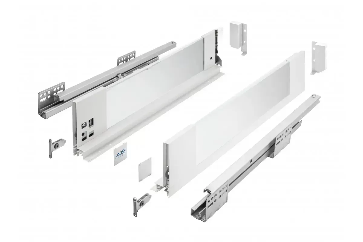 Zásuvka AXIS PRO se skleněnými bočnicemi má dlouhou životnost certifikovanou na 60 000 cyklů. Poskytuje plný výsuv v délkách od 300 do 550 mm a mechanismus měkkého zavírání zaručuje tichý chod a plynulé zavírání zásuvky. Díky 3 výškovým variantám se dokonale přizpůsobí vašim interiérům. Zásuvkové sklo AXIS PRO je tvrzené sklo , odolné proti poškození a snadno se čistí. S šířkou bočnice zásuvky pouhých 14 mm můžete maximálně využít vnitřní prostor skříňky. Hmotnost zásuvky umožňuje uložit do ní až 40 kg různých produktů. Zásuvky AXIS PRO se skleněnými bočnicemi jsou založeny na posuvných lištách AXIS PRO s měkkým dovíráním. Instalace je snadná díky pohodlnému nastavení zevnitř, nastavení sklonu a horizontálnímu nastavení v rozsahu +- 2 mm. Zásuvka je vhodná pro širokou škálu systémů řízení prostoru, příborových vložek, rohoží a třídičů odpadu.