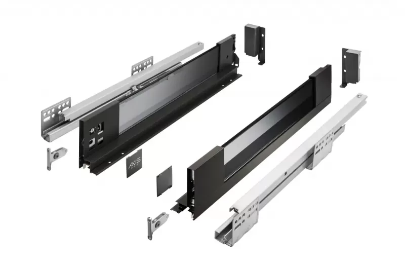 Zásuvka AXIS PRO se skleněnými bočnicemi má dlouhou životnost certifikovanou na 60 000 cyklů. Poskytuje plný výsuv v délkách od 300 do 550 mm a mechanismus měkkého zavírání zaručuje tichý chod a plynulé zavírání zásuvky. Díky 3 výškovým variantám se dokonale přizpůsobí vašim interiérům. Zásuvkové sklo AXIS PRO je tvrzené sklo , odolné proti poškození a snadno se čistí. S šířkou bočnice zásuvky pouhých 14 mm můžete maximálně využít vnitřní prostor skříňky. Hmotnost zásuvky umožňuje uložit do ní až 40 kg různých produktů. Zásuvky AXIS PRO se skleněnými bočnicemi jsou založeny na posuvných lištách AXIS PRO s měkkým dovíráním. Instalace je snadná díky pohodlnému nastavení zevnitř, nastavení sklonu a horizontálnímu nastavení v rozsahu +- 2 mm. Zásuvka je vhodná pro širokou škálu systémů řízení prostoru, příborových vložek, rohoží a třídičů odpadu.