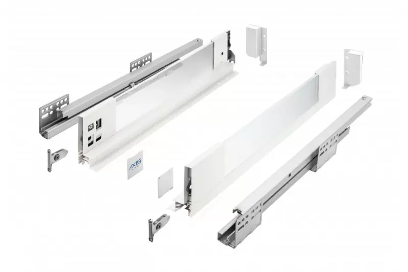 Zásuvka AXIS PRO se skleněnými bočnicemi má dlouhou životnost certifikovanou na 60 000 cyklů. Poskytuje plný výsuv v délkách od 300 do 550 mm a mechanismus měkkého zavírání zaručuje tichý chod a plynulé zavírání zásuvky. Díky 3 výškovým variantám se dokonale přizpůsobí vašim interiérům. Zásuvkové sklo AXIS PRO je tvrzené sklo , odolné proti poškození a snadno se čistí. S šířkou bočnice zásuvky pouhých 14 mm můžete maximálně využít vnitřní prostor skříňky. Hmotnost zásuvky umožňuje uložit do ní až 40 kg různých produktů. Zásuvky AXIS PRO se skleněnými bočnicemi jsou založeny na posuvných lištách AXIS PRO s měkkým dovíráním. Instalace je snadná díky pohodlnému nastavení zevnitř, nastavení sklonu a horizontálnímu nastavení v rozsahu +- 2 mm. Zásuvka je vhodná pro širokou škálu systémů řízení prostoru, příborových vložek, rohoží a třídičů odpadu.