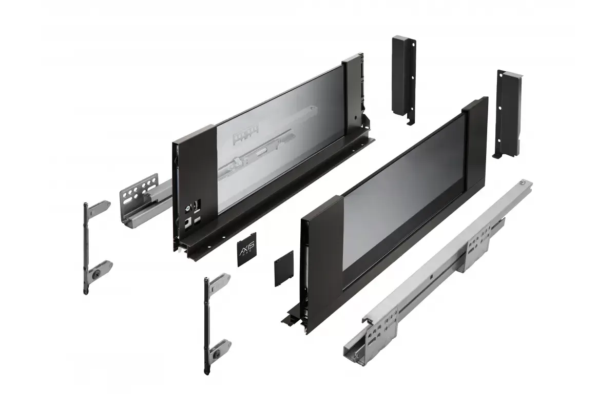Zásuvka AXIS PRO se skleněnými bočnicemi má dlouhou životnost certifikovanou na 60 000 cyklů. Poskytuje plný výsuv v délkách od 300 do 550 mm a mechanismus měkkého zavírání zaručuje tichý chod a plynulé zavírání zásuvky. Díky 3 výškovým variantám se dokonale přizpůsobí vašim interiérům. Zásuvkové sklo AXIS PRO je tvrzené sklo , odolné proti poškození a snadno se čistí. S šířkou bočnice zásuvky pouhých 14 mm můžete maximálně využít vnitřní prostor skříňky. Hmotnost zásuvky umožňuje uložit do ní až 40 kg různých produktů. Zásuvky AXIS PRO se skleněnými bočnicemi jsou založeny na posuvných lištách AXIS PRO s měkkým dovíráním. Instalace je snadná díky pohodlnému nastavení zevnitř, nastavení sklonu a horizontálnímu nastavení v rozsahu +- 2 mm. Zásuvka je vhodná pro širokou škálu systémů řízení prostoru, příborových vložek, rohoží a třídičů odpadu.