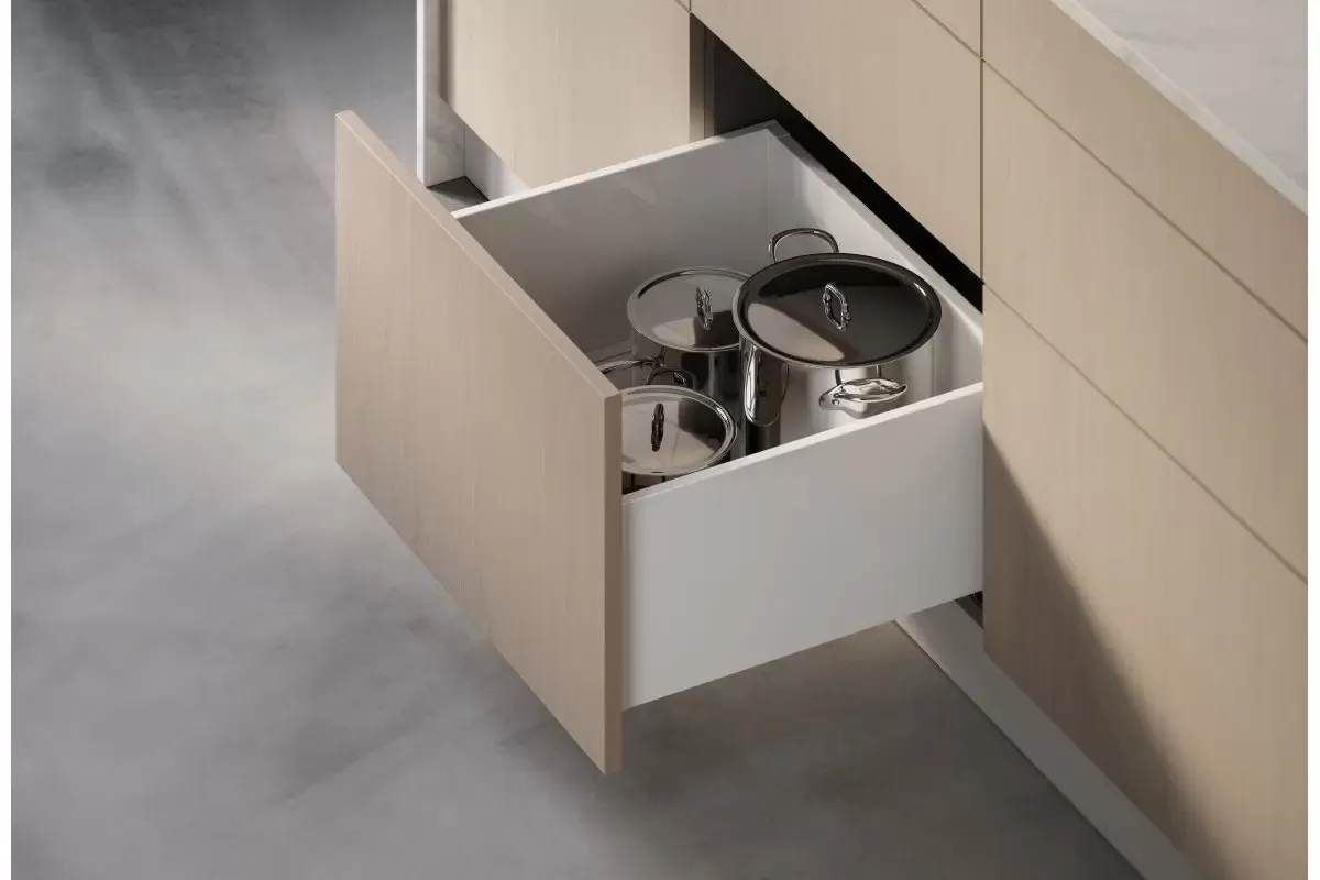 Zásuvka Axis Pro Push to Open má vysokou odolnost certifikovanou pro 60 000 cyklů. Poskytuje plné vysunutí v délkách od 300 do 550 mm a mechanismus push to open se synchronizací otevírání zaručuje hladké otevření zásuvky zatlačením na libovolné místo na přední straně zásuvky. 5 výškových variant dokonale zapadne do vaší kuchyně a boční strana zásuvky o šířce pouhých 13 mm umožňuje maximální využití vnitřního prostoru zásuvky. Zatížení zásuvky umožňuje umístit do ní až 40 kg různých výrobků. Instalace zásuvky je snadná díky pohodlnému nastavení na vnitřní straně zásuvky, nastavení sklonu a horizontálnímu nastavení v rozsahu +- 2 mm.