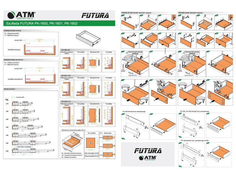 Futura jsou moderní zásuvkové systémy dostupné ve výškách: 90 mm, 122 mm, 172 mm